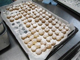粉砂糖を雪にみたてていて、口の中に入れると、ほろほろと崩れてしまうクッキーです。