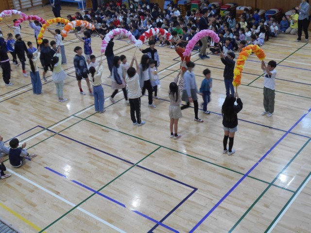 17日(金)、体育館にて「1年生を迎える会」が行われました。6年生のお兄さん、お姉さんに手を引かれ、少し緊張した表情で入場した1年生でしたが、上級生による心のこもった出し物が始まると、会場は温かな拍手と笑い声に包まれました。プレゼントのメダルが贈られ、1年生はお礼に元気いっぱいの歌声を披露してくれました。全校生徒が一つになり、新しい仲間を歓迎する素晴らしい行事となりました。