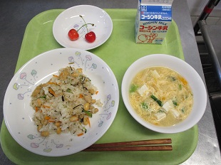 ◇牛乳 ◇磯おこわ ◇卵のスープ ◇さくらんぼ