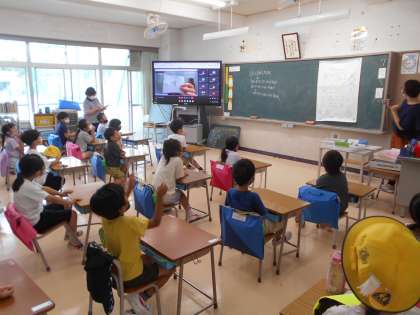6日(水)は児童集会でした。集会委員会による「ひらがなビンゴ」を楽しみました。各学級でアトランダムに、ひらがなをビンゴ表に書き込み、集会委員が引いたひらがなでビンゴにしていくという方法です。集会委員は、理科室からリモートで配信しました。