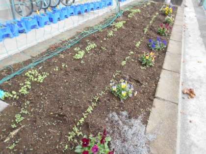 15日(土)に植えたシュンギク、ハツカダイコン、アブラナは、2年生の熱心なお世話もあって順調に発芽し、育っています。11月の公開日に、その成長をご覧ください。