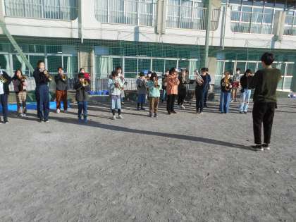 30日(月)の全校朝会から金管バンドによる行進曲の演奏が再スタートしました。これから毎週月曜日、全校朝会の集合及び退場の際に演奏する予定です。