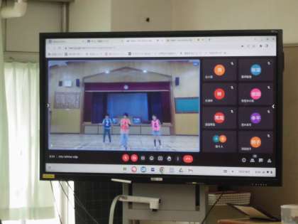 18日(水)に、集会委員会による「だれが1番長く続けられるか」という集会がありました。グループごとにドリブルやバランス、なわ跳びをして、番号のビブスを付けた集会委員のだれが最後まで続けられるか、体育館からリモートで、各教室の電子黒板に配信しながら楽しみました。一堂に会することなくできる新しい形の集会です。