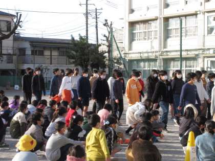 25日(金)は2学期の終業式でした。校長講話後、1年生と4年生の代表児童が2学期に頑張ったことや3学期への抱負を発表しました。最後は6年生に、下学年に対して上手な足踏み行進のお手本を示してもらいました。