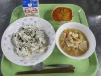 ◆牛乳 ◆アーモンドトースト ◆かぶのシチュー(米粉使用)           ◆コールスロー