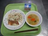 ◇牛乳 ◇いなり寿司風混ぜごはん ◇魚の塩麹焼き ◇みそ汁 ・大根・・...