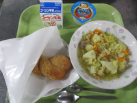 牛乳シュガートーストチキンクリームシチューひじきとパプリカのサラダにんにく(青森...