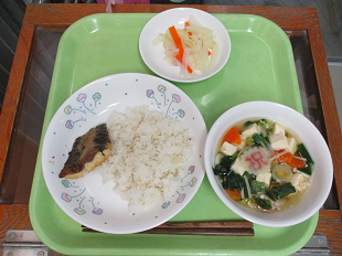 牛乳 ごはん シルバーの南部焼き 野菜のからし和え しめじと卵のスープ ・ も...