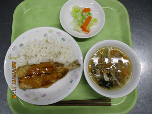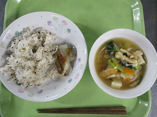 牛乳 さつまいもごはん あじの塩焼き ゆで野菜ののり和え うどん入り五目汁 ...