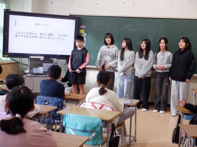 6年生は総合的な学習の時間で難民の生活や支援について調べています。