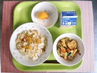 麦ごはん、高野豆腐の中華風、ばんさんすう、牛乳