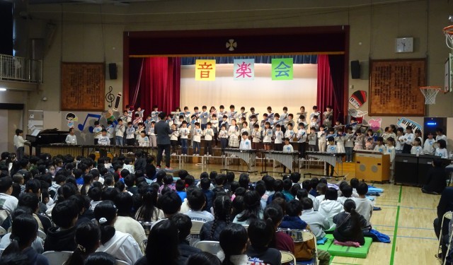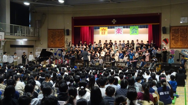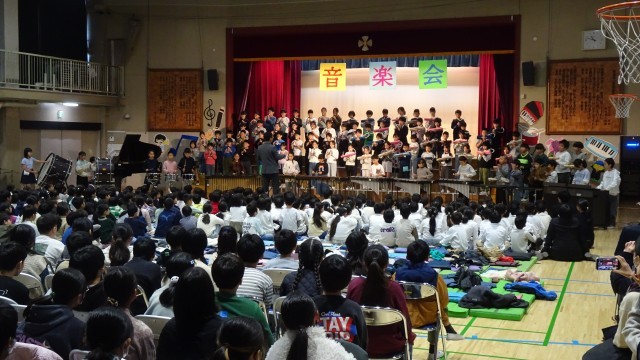 「一音入魂 声をそろえて 心を一つに みんなでかなでる ハーモニー」  子どもたちが考えた今年度の音楽会のテーマです。本日は音楽会の児童鑑賞日でした。体育館に全学年が集い、みんなでつくり上げてきた歌や合唱、合奏を発表し合いました。どの学年も、その学年ならではの個性が感じられ、素晴らしい内容でした。鑑賞する態度も立派で、会場のみんなの心が一つになるような一体感を感じました。明日は保護者鑑賞日です。子どもたちが積み重ねてきた学習の成果をどうぞご覧になってください(写真は各学年の合奏の様子です)。