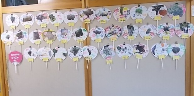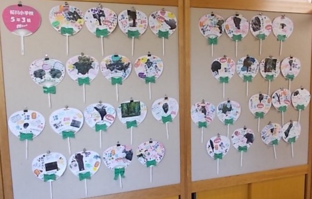 校庭や地域にある木を「推しの木」として、その魅力をうちわに記入したり、