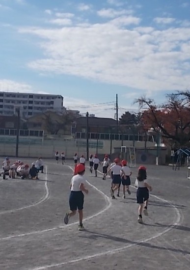 1校時は3年生の、3校時は1年生の「持久走記録会」でした。
