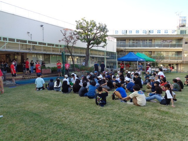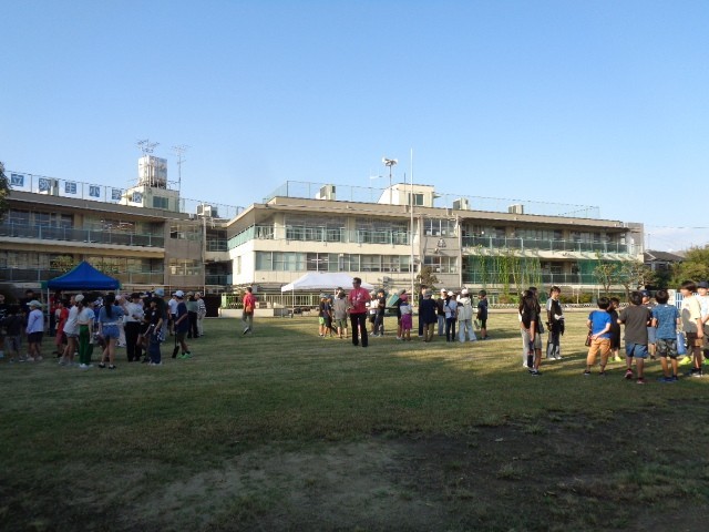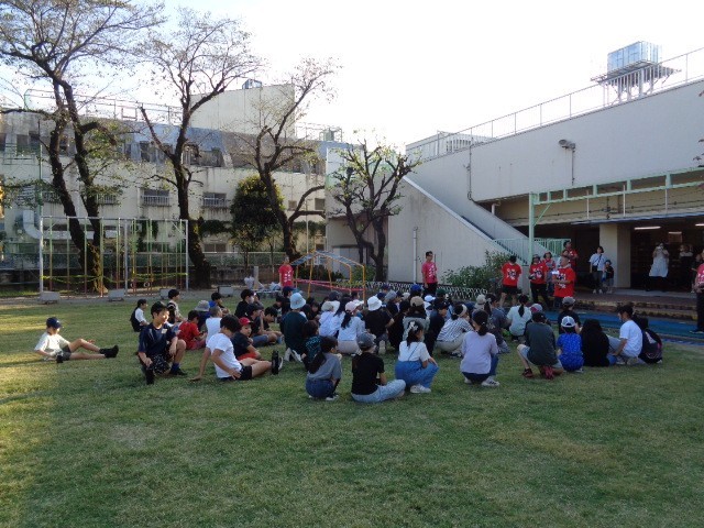 いよいよ始まりました。3時45分から4年生~6年生の参加者と大人の皆さんが集まって開会式を行いました。