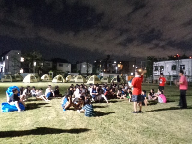 ただいま時間は10時15分です。肝試しも終わり、今、子どもたちはテントで寝る準備をしています。