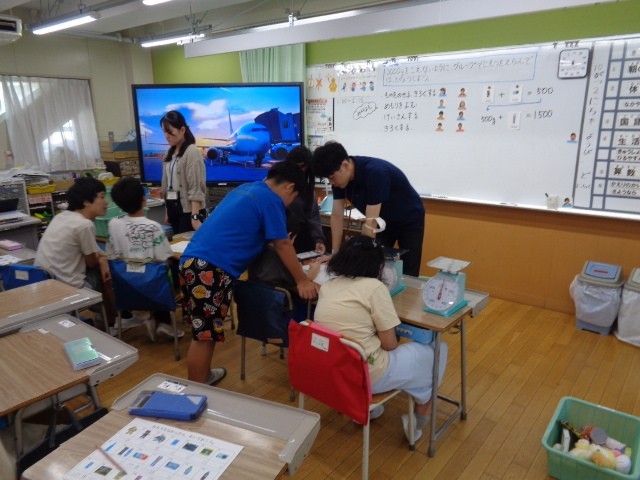 授業内容は、この学校日記にもこれまで何度か出てきた算数「めざせ!重さマスター」で、今日はその最後の授業でした。