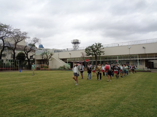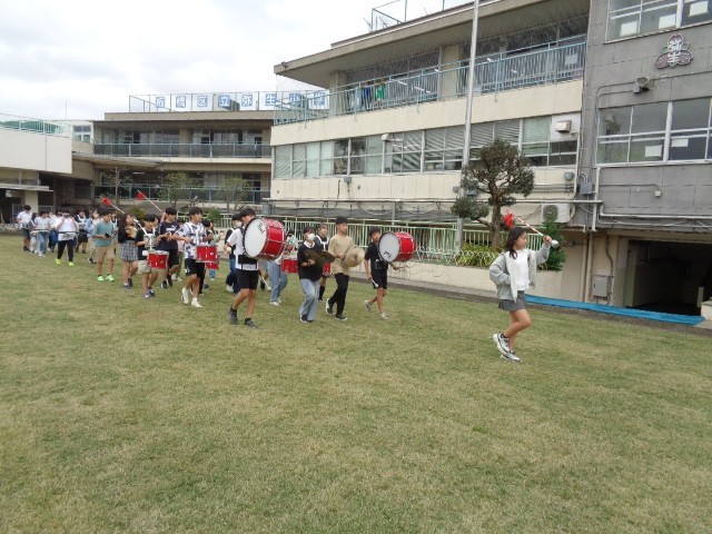 10月19日(日)の区民まつりでの音楽パレードへ向けて、6年生は、今、鼓笛の練習をしています。今日の1時間めは、初めて校庭で歩きながら演奏をしました。子どもたちの感想の中には、「初めて外でやってみて、体育館のときは音が響いて大きく聞こえていたけれど、校庭では音が小さく聞こえてきて合わせづらかった。」という声もありました。これから何度か校庭での練習を重ねて本番ではもっと素晴らしいパフォーマンスをしてくれるのではないかと思います。区民まつり、そして、その先にある運動会に向けて頑張ってほしいです。