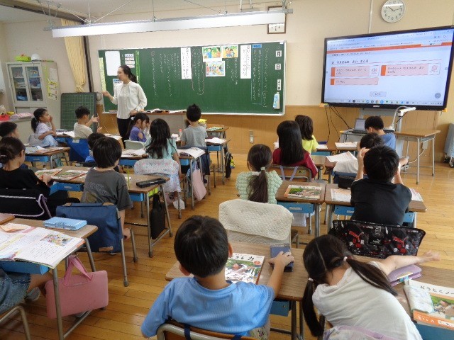 昨日の2時間め、2年2組では道徳の授業が行われていました。今日の教材は「りえさんのよいところ」というお話で、めあては、「自分や友だちのよいところを見つけ、友だちにつたえよう。」でした。教材文の読み取りをした後、グループごとに分かれて友だちのよいところについて伝え合いました。