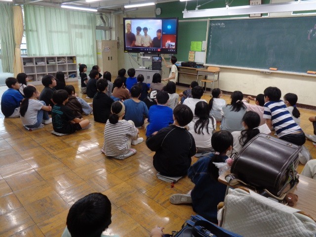 今日の6時間め、6年生の教室では6年生全員が集まり、上板橋第一中学校の皆さんによるオンライン入学説明会に参加していました。中学生の皆さんから中学校生活のお話を聞いた後に、質問タイムで中学校についてわからないことや心配なことについて質問をしました。