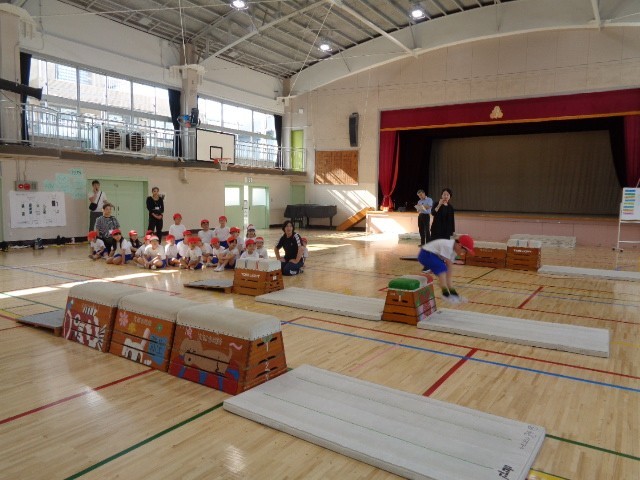 10月10日(金)2年1組体育「とび箱を使った運動遊び」(研究授業)