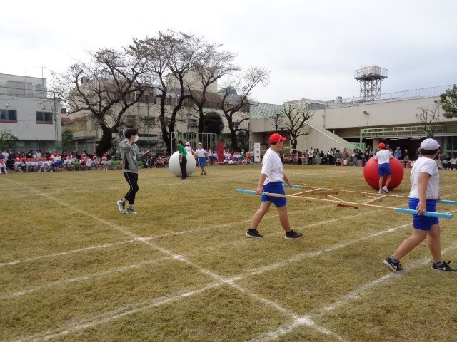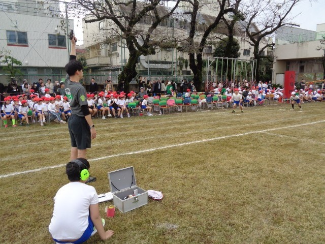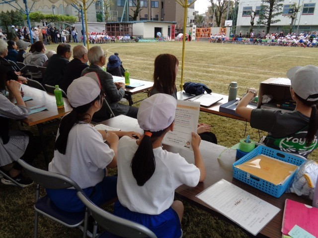運動会は、高学年の子どもたちがいろいろな仕事を担って頑張ってくれました。全部は紹介できませんが、左から審判・ゴールテープ係、放送係、出発係、用具係の皆さんが頑張っている様子です。