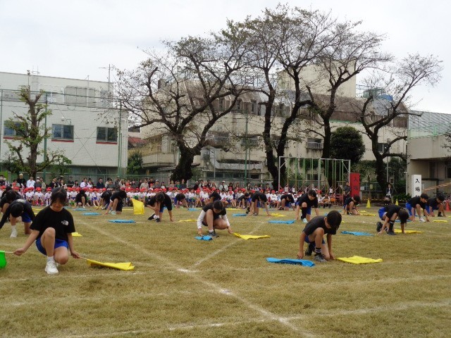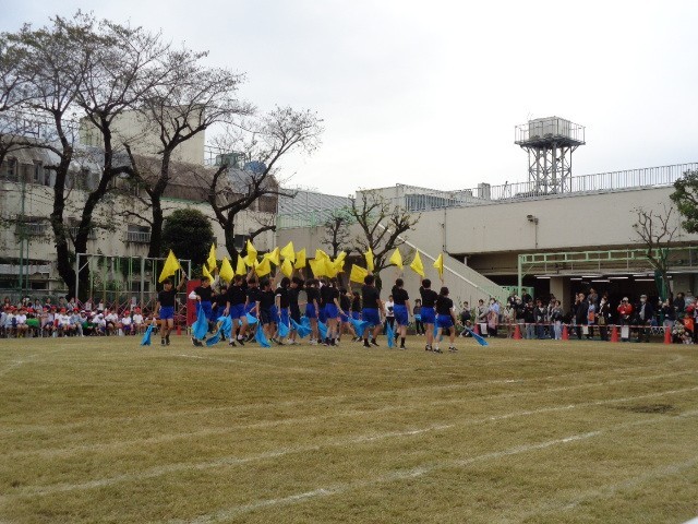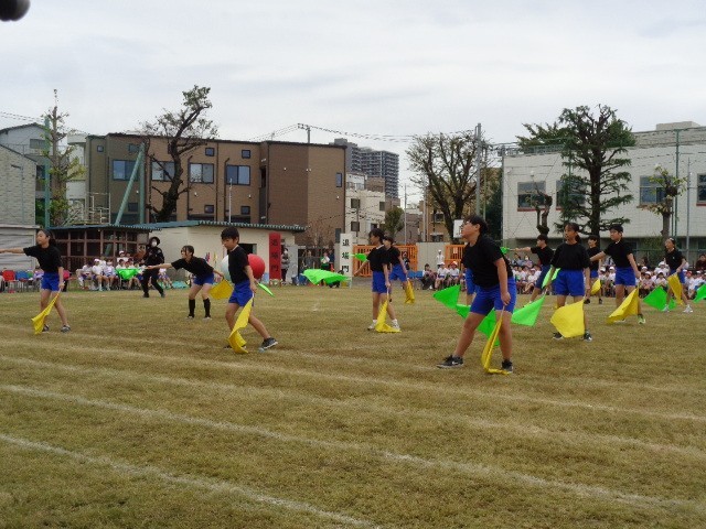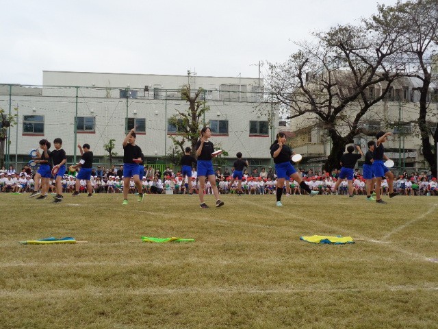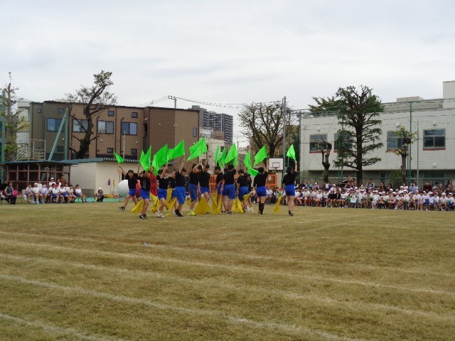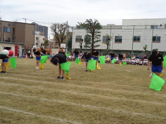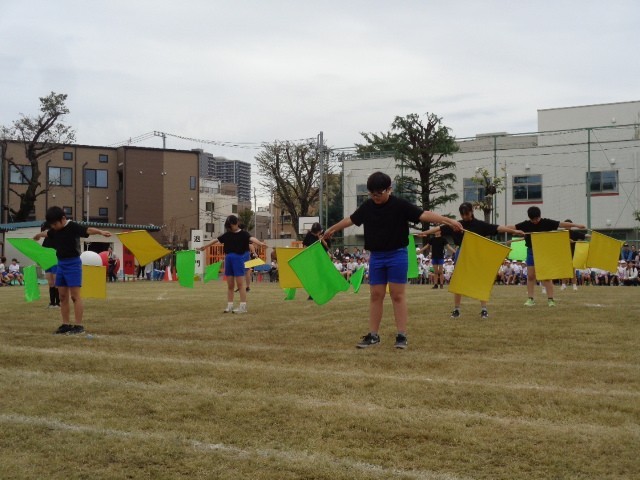 6年生は「2つのキセキ ~奇跡・軌跡~」をやりました。最初は2年生から4年生まで自分たちがやってきた表現を披露し、その次は先ほど5年生がやった「ソーラン節」、そして、「希望の轍」の曲に乗せてフラッグを使った表現を行いました。構成も選曲も素晴らしく感動的なパフォーマンスとなりました。