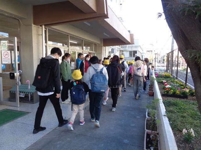 最後に終わりの会を行い、また、歩いて弥生小学校まで戻ってきました。帰るときには、板橋第七小学校の子どもたちと先生方が両側にアーチのように並んで見送ってくれて、見えなくなるまで手を振ってくれていました。