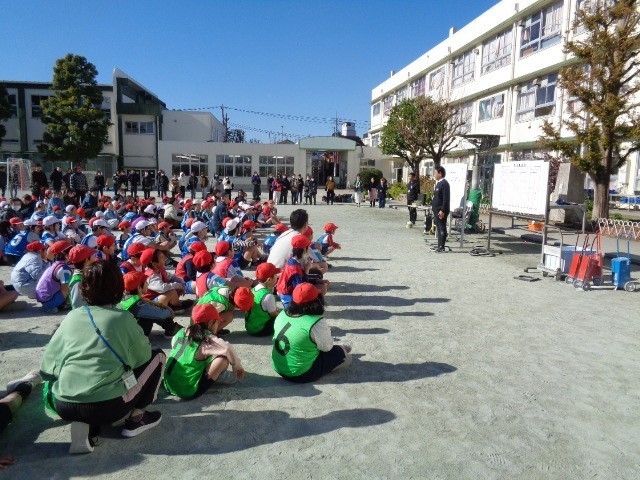 閉会式では、まずは弥生小学校の6年生が、前に出て整理運動をしました。その後、サッカー大会3位とPK合戦5位の表彰がありました。最後はみんなで写真を撮って学校へ帰りました。