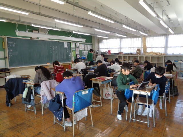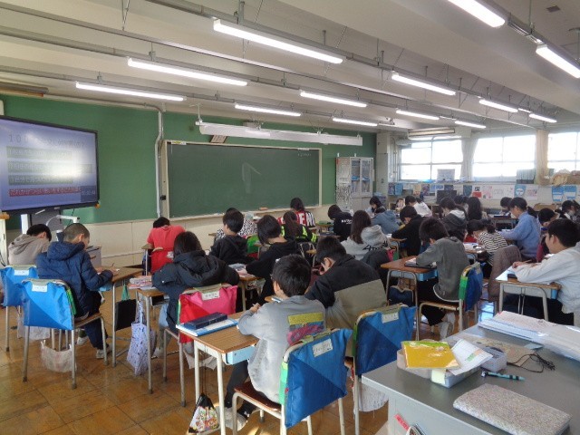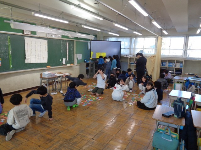 4年生~6年生までの様子です。百人一首をしたり、双六をしたり、百マス作文をしたり、3学期のめあてを書いたりなど、それぞれのクラスで3学期の初日を楽しく、真剣に取り組んでいたようです。