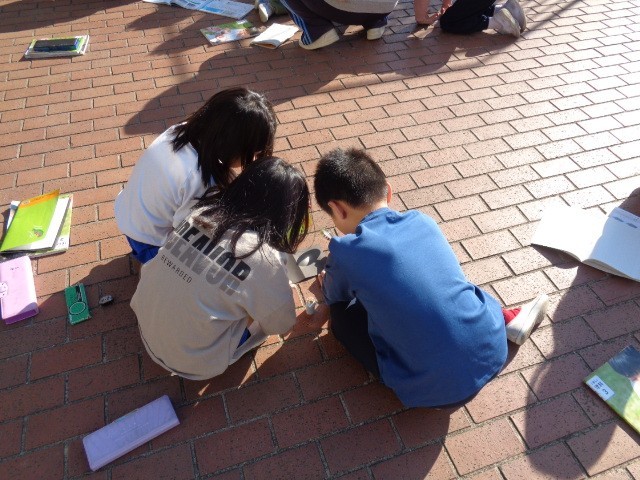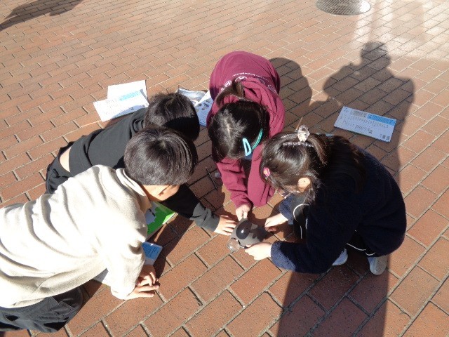 3年生の教室では、2組は算数で重さの学習を実際に天秤を使って行っていました。また、2組では理科で虫メガネで日光を集めて黒い紙を燃やしていました。子どもたちは歓声をあげながら実験をしていました。