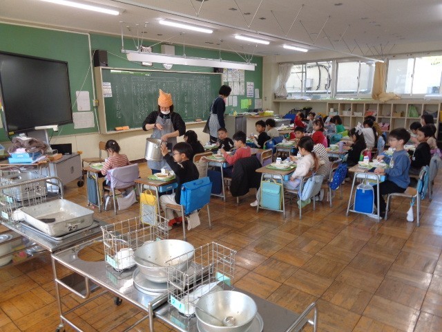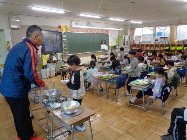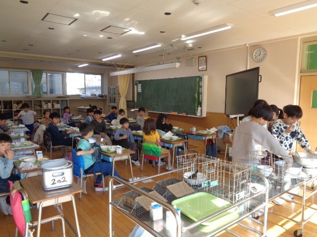 今日の献立はキーマカレー、レモンドレサラダ、パイン缶と子どもたちが大好きな献立だったので、どのクラスへ行っても食缶のなかはほぼ空っぽでした。たくさん食べておおきくなあれ!