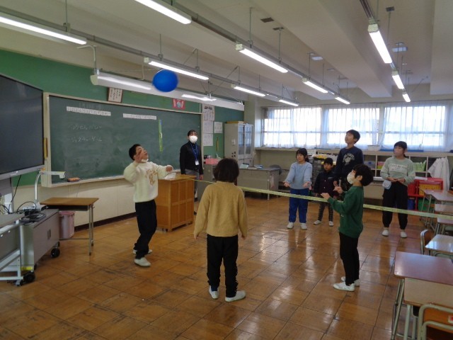 二つのグループに分かれて行ったので、もう一つのグループの皆さんは隣の部屋で風船バレーボールをして待っていました。