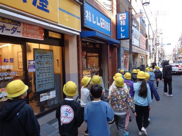 2年2組では、下頭橋通りから中板橋駅方面に向かい、踏切を渡って中板橋の商店街にあるいろいろなお店を見て回ってきました。今日の学習から私たちの住む町にはたくさんのお店や神社などの古いものもあることが分かりました。