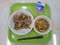 今日の給食は「節分の行事食」を用意しました。節分には、いわしを食べる風習がありますが、今日の給食では魚のいわしと鶏のひき肉を使ったハンバーグを用意しました。季節の変わり目で、体調を崩しやすい時期ですが、しっかりと食事をとって、風邪に負けない体作りをしましょう。