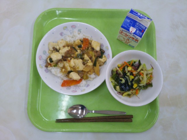今日の給食の「海藻サラダ」は6年生のリクエストメニューのひとつです。海藻サラダは、6年生だけでなく弥生小学校全体で人気のメニューになっています。
