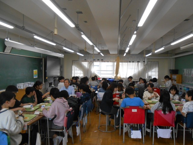 本日は第1回コミュニティスクール(iCS)委員会が開催されました。校長より学校経営方針のグランドデザインの説明が行われた後で、CS委員の皆さんにはは6年生と一緒に給食を食べていただきました。食後の休み時間は子供たちと楽しく遊んでくださいました。
