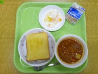 チキンドライカレー 海藻サラダ ゆでとうもろこし 牛乳