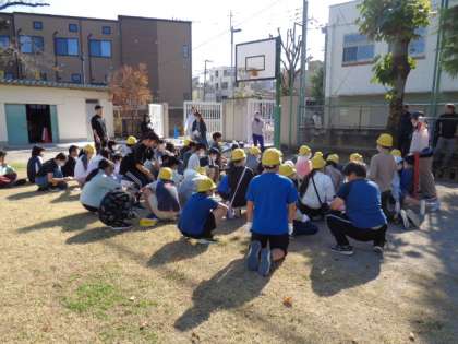 保護者の方々を中心に準備を進めていただき、まずは全員集まって塗り方の説明をしていただきました。