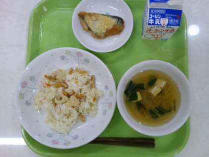 五目ちらしずし さわらのアーモンド焼き あしたば麺入りすまし汁 牛乳