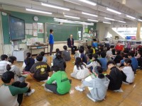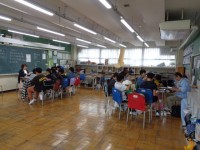 5時間め、4年2組では百人一首をしていました。グループに分かれて、先生の読み札を聞いてみんなで取り合います。中には上の句だけを聞いてかるたを取る子もいました。