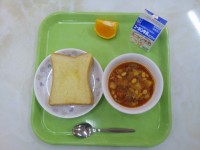 牛乳セサミトーストレンズ豆のスープフルーツミックス今日の給食は、すりごまを使った...