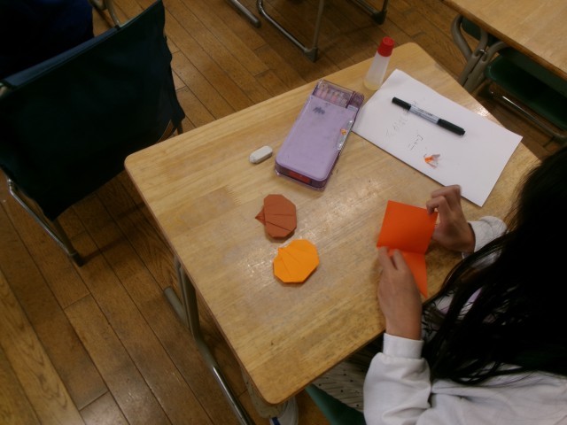 ハロウィンの装飾作りに取り組みました。かぼちゃやおばけ、蜘蛛の巣など色とりどりな作品ができあがりました。「ここに貼ったらどう?」「一緒に切ろうよ」と声をかけ合いながら活動しました。また、折り方を教え合いながら取り組む姿が見られました。秋ならではの行事を楽しみ、季節を感じることができました。