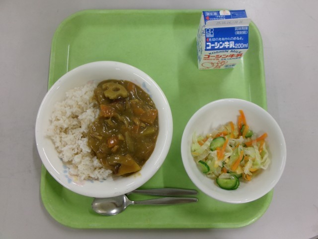 【秋野菜のカレーライス コールスロー 牛乳】でした。