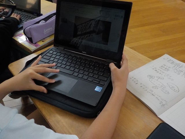 今日は東京都の府中のくらやみ祭について知り、調べた子供たちが、それ以外の東京都の文化財や年中行事について自分の関心のあるものについて調べ学習を進めていました。いつ、どこで、なぜ、どんな内容かなどについて調べる上で落とさないことについて確認をしたあと、それぞれの方法で調べ学習を進めていきます。どの子もパソコンスキルが発達していて、どんどんタブレットを活用している姿が目を引きました。江戸切子や深川八幡祭りや浅草、神田祭などのお祭りや、江戸城や八王子などの建物や歴史について、江戸切子、板橋花火大会の文化や伝統について、などなど・・写真を交えて調べる様子が見られました。