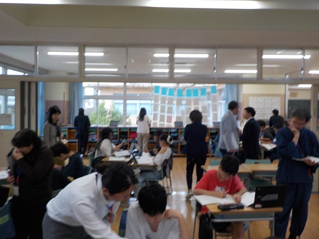 子供たちは、自分たちでそれぞれその時間に取り組むめあてを立てて、示された課題のどこまでをその時間に取り組むのかを計画し、グループや一人学習など、それぞれが自分を高められると考える形態で熱心に学習に取り組みました。協議会では、活発な意見交換が行われ、高学年は中学年までに身に付けるべき文章を「要約」する力を活用した、長い文章の「要旨」を捉えることを意識した学習内容を重視するべき・・・など、わたしたち教員も講師の先生から様々な学びをいただきました。