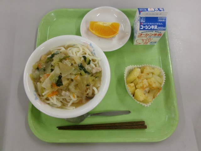 【あんかけうどん ポテトのチーズ焼き オレンジ 牛乳】でした。