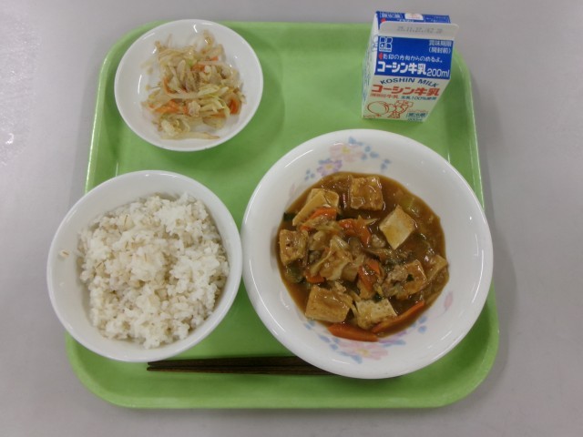 【麦ごはん 白菜と生揚げの中華炒め ごまだれサラダ 牛乳】でした。