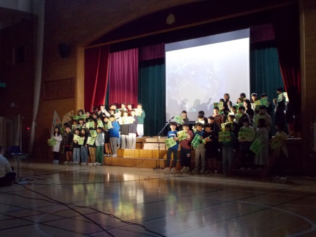 6年生は自分たちの発表もある中で、他学年の準備や司会進行も行うので大忙しです。今日は児童が下校した後に6校時に前日準備で会場設営を担当していました。