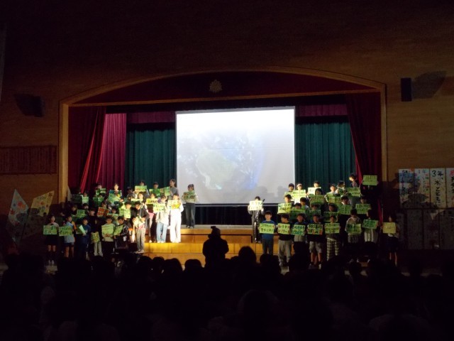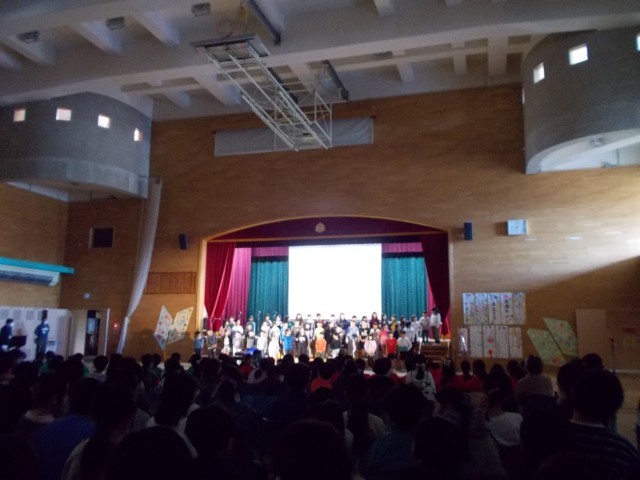 今日は児童が一同に集まっての鑑賞会でしたので、児童、職員ともにマスクを着用し、自分の出番では外して発表を行いました。各御家庭の御協力もありがとうございました。